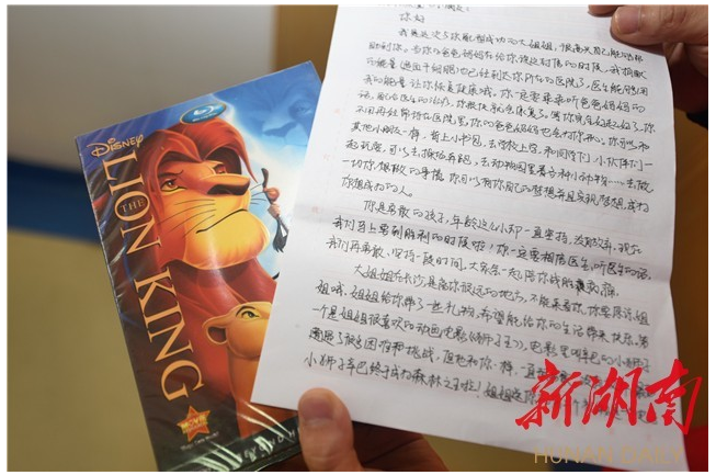 李小珊希望受捐者也要像辛巴一样坚强。她手写了一封长信。信中,李小珊为小朋友打气:“医生用我给你的能量给你恢复健康……你可以跟其他小朋友一样,背着书包去上学,跟小伙伴一起玩耍,做一切你想做的事情。电影《狮子王》里,叫辛巴的小狮子遇到了很多困难和挑战,但它跟你一样,一直很勇敢,没有放弃,最后终于成为森林之王……等你好起来了,姐姐来看你,你带着姐姐一起玩好吗?”