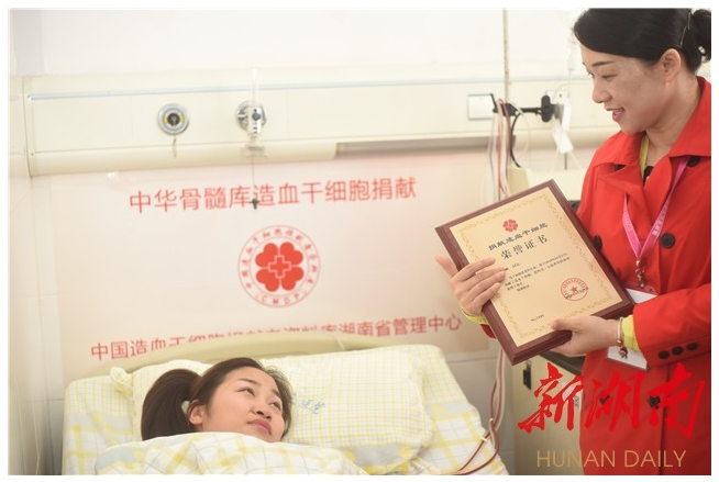 小珊光荣地成为中华骨髓库第7195位造血干细胞捐献者,她的荣誉证上写着:“您的这一人道善举使患者获得了重生。”
