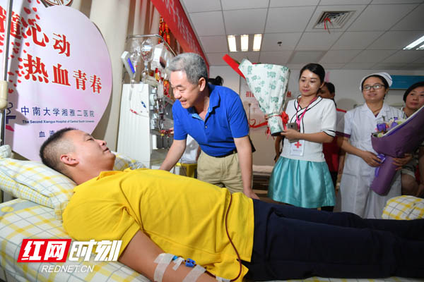 随后,湖南省红十字会党组成员、副会长王广宇、中南大学湘雅二医院副院长柴湘平教授来到采集室对捐献者进行了探望。柴湘平教授表示,非血缘造血干细胞移植是一项非常成熟的技术,在国际上已经非常普遍,对志愿者身体也不会产生任何影响,希望志愿者加入到这一爱心大家庭中,用自己实际行动帮助这些等待救援的家庭。