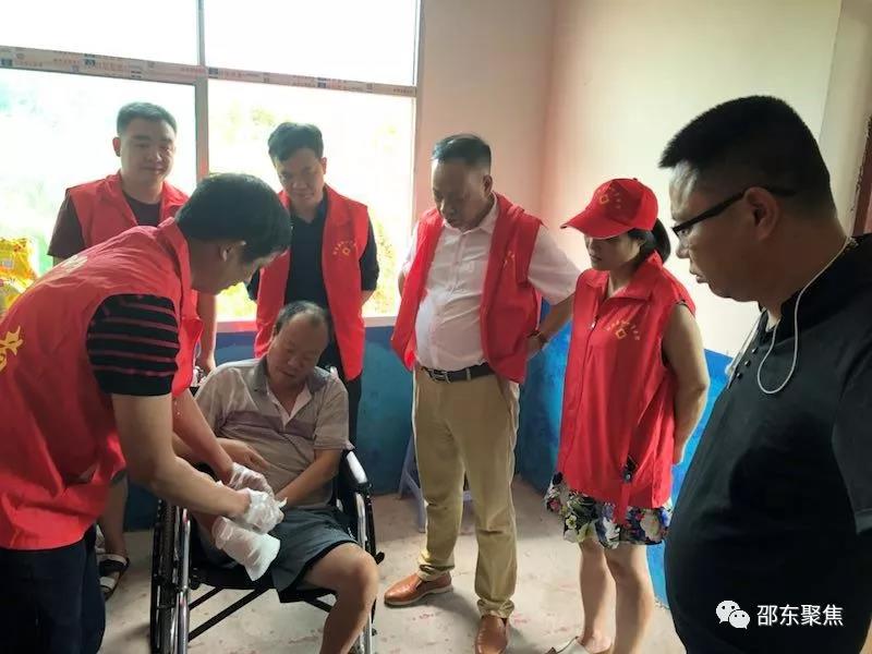 在贫困户肖志亮家,医护人员为其伤口换药,并嘱咐按时服药,按时伤口换药,该院负责人对肖志亮说:“如有必要可以随时来医院复诊”。在贫困户杨正湘家,得知她三个儿子先后因病去世,老人独自生活,大家深表同情,志愿者为其常规身体体检,嘱咐老人要多注意身体,并向老人宣教了安全小常识。