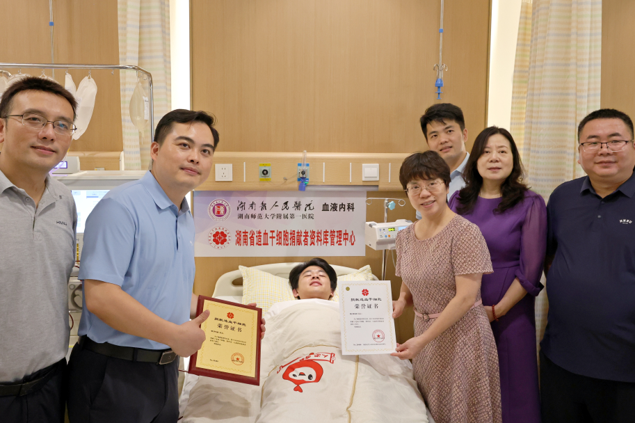 2025年7月2日,湖南师范大学医学部2022级临床医学专业学生欧阳喆在湖南省人民医院(湖南师范大学附属第一医院)顺利完成造血干细胞捐献。作为湖南师范大学医学部第四位成功捐献造血干细胞的志愿者(编号:20480),欧阳喆用实际行动诠释了医学生的仁心与大爱,践行了“健康所系,性命相托”的医学誓言。