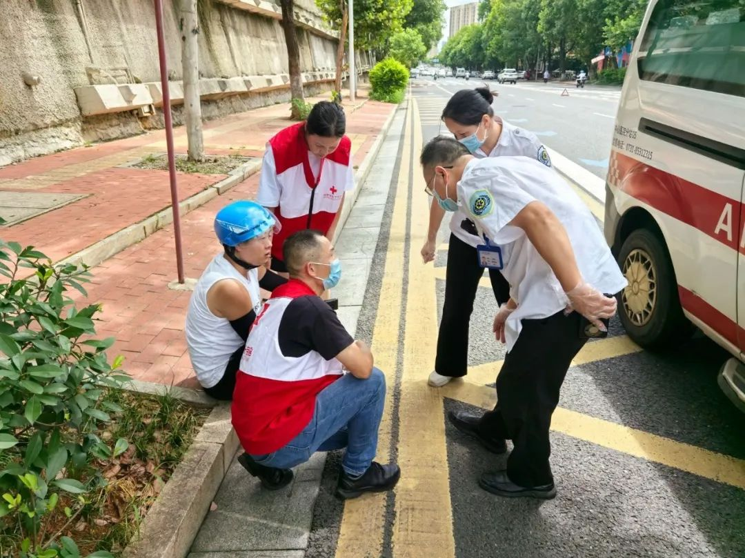 此时,湖南省红十字会应急救护师资朱艳军、金灿正驾车执行日常任务途经该路口。“远远就看到路中央有人倒地,边上停着电动车和汽车,我们立即判断是交通事故。”队员金灿回忆道。没有丝毫犹豫,他们迅速将车辆安全停靠,抓起随车携带的急救箱,直奔事故现场。