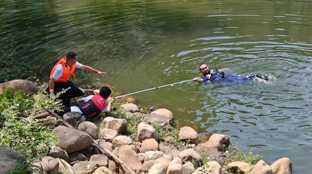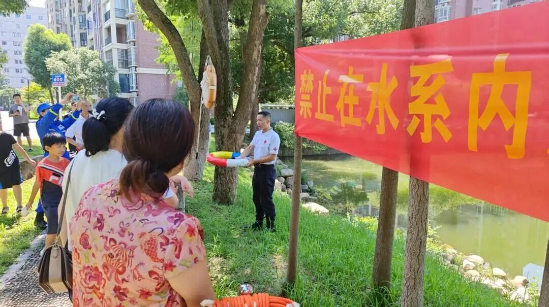 活动最后,蓝天救援队在小区景观湖开展水域应急救援模拟演练。通过真实场景模拟“落水—发现—施救—自救”全过程,进一步加深了青少年对水域风险的感知和应对能力,也展现了红十字救援力量的专业素养和实战能力。