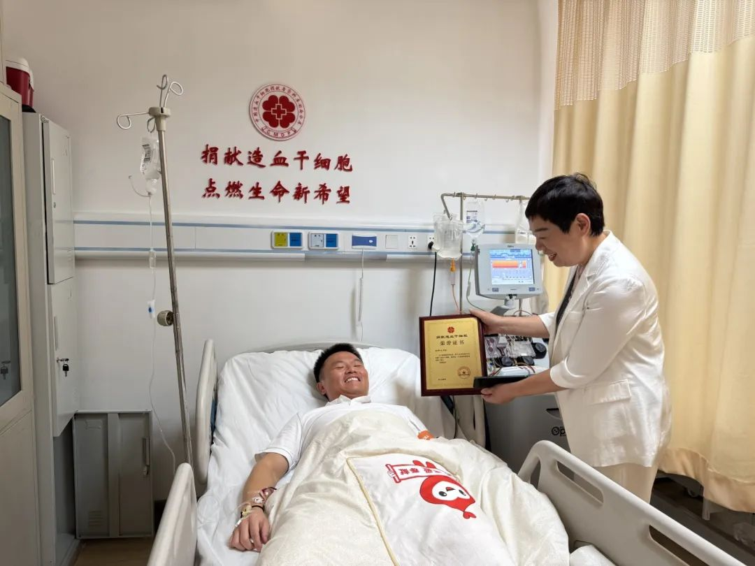 8月19日上午8时,龙开心在中南大学湘雅医院开始进行造血干细胞捐献采集。上午10时,市红十字会党组书记、专职副会长夏洁为他颁发荣誉证书、送上慰问金,并对他的爱心之举给予充分肯定和赞扬。