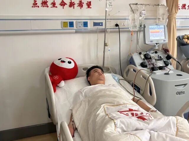 另一间采集床上,躺着00后大学生何周宇。他来自湖南道县,父亲何金吉是当地红十字会工作人员,常年负责“三献”宣传推广工作。